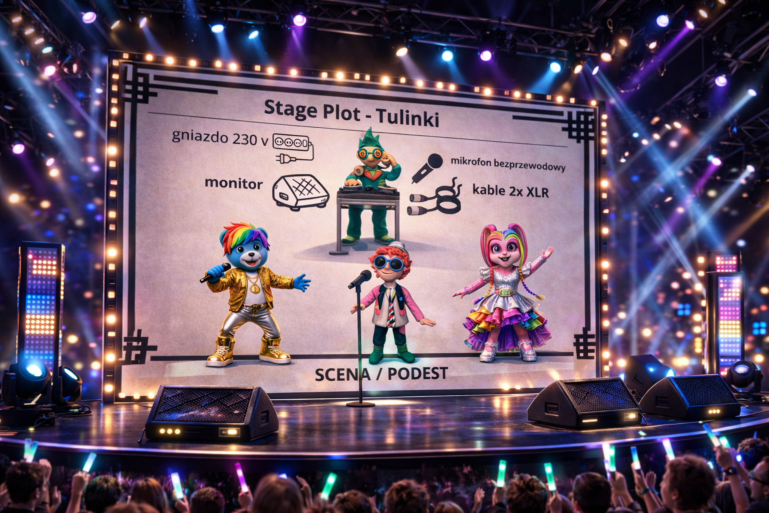Jest to przykładowy raider, który dostosujemy indywidualnie do możliwości organizatora imprezy. Szczegółowy raider techniczny zawsze przesyłamy z umową oraz ustalamy telefonicznie.